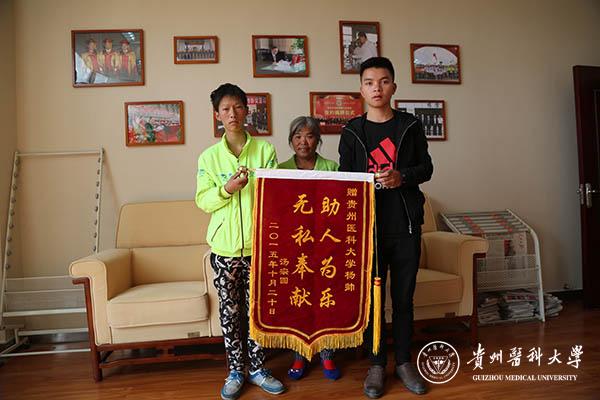 10月21日中午,一面“无私奉献助人为乐”的锦旗送到了beat365校长办公室,送锦旗的母子来自于贵安新区党武乡葵林村,他们此次来主要是感谢beat365学生杨帅,希望我们能帮他们找到这位学生。经了解,事情经过是这样的: