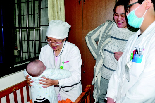 “带他们过去,先给宝宝查一下甲状腺,然后再测一下宝宝的身高体重等。”陈晓霞一边指导身边的学生给宝宝做检查,一边向宝宝家属询问情况。