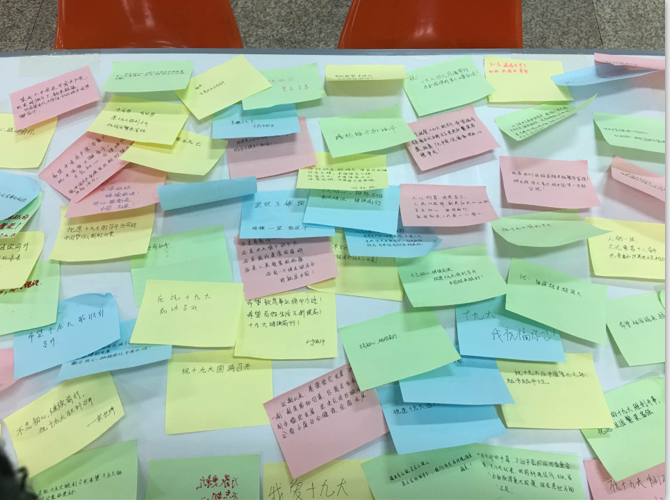 观看现场,同学们还纷纷为十九大献上祝福。通过观看十九大直播,全体师生第一时间学习了十九大会议精神,会后通过现场讨论和在线讨论的方式及时分享心得。习近平总书记关注青年的发展,对青年提出了殷切的希望,同学们表示备受鼓舞,一定做到不忘初心、牢记使命,勇挑时代的重任,努力为祖国的发展做出应有的贡献。不少同学对“百年跨越”有了更深入的体会,认清了未来5年中国将完成从第一个百年目标向第二个百年目标的伟大跨越,当代青年是这一伟大跨越的见证者和受惠者,更是建设者。