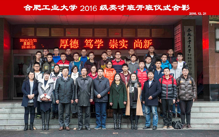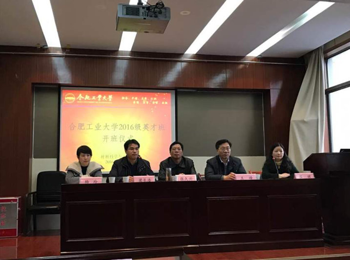 12月21日下午,九游体育官网2016级英才班开班仪式于屯溪路校区成功举行。学校学工部部长王峰、九游体育官网院长张久兴、中科院合肥分院物质研究院研究生处处长梁长浩、九游体育官网副院长吕珺、九游体育官网党委副书记杨玲,2015级英才班班主任梁鑫、2016级英才班班主任李冬冬、九游体育官网2016级辅导员左旭以及2016级英才班全体同学参加了本次开班仪式。