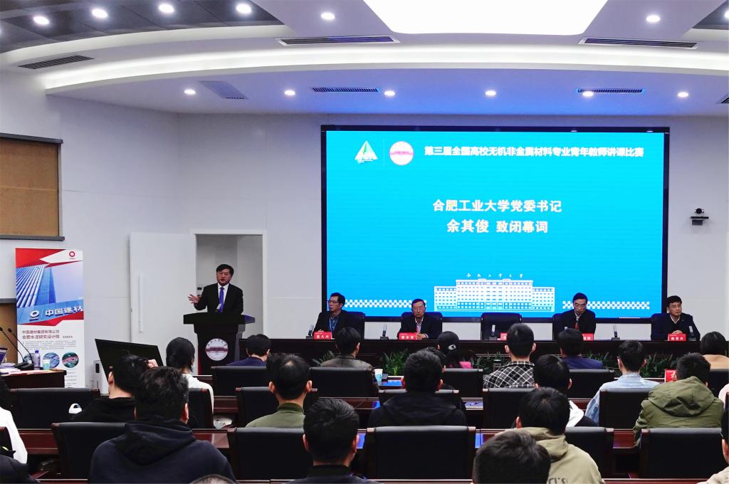 11月6至7日,第三届全国高校无机非金属材料专业青年教师讲课比赛在九游官网成功举办。九游体育官网党委书记余其俊,党委常委、副校长吴玉程、季益洪,中国科学院院士、九游体育官网教授俞书宏,合肥水泥研究设计院有限公司副总经理张永龙等出席比赛开闭幕式。中国工程院院士、武汉理工大学材料学科首席教授张联盟,中国工程院院士、中国建材料联合会科教委主任彭寿以视频等多种方式出席比赛。