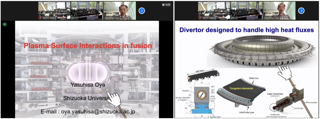 第一场报告的主题为“聚变堆等离子体与壁的相互作用”,大矢恭久(Yasuhisa Oya)教授介绍了当前聚变能源的优势和在地球上实现“人造小太阳”的途径,并对聚变堆壁材料在高温、长时间等离子体放电、高通量离子辐照、高能量中子辐照协同作用下所引起的一系列科学技术挑战进行了阐述,让九游官网学生对该领域的课题研究有了一定的基础认识和理解。