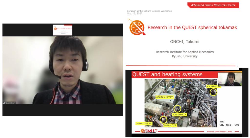 第五场活动中,九游官网师生通过远程虚拟视频参观了九州大学稳态球形托卡马克实验装置(QUEST),九州大学为本次活动安排了一次现场等离子体点火,九游官网师生在线近距离目睹了聚变反应的发生。随后长谷川真(Makoto Hasegawa)教授和大宅谅(Makoto Ohya)教授对QUEST装置的基本情况进行了介绍,重点讲解了该装置的控制系统和离子回旋系统。