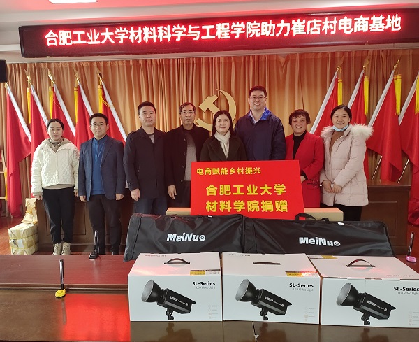 学院一行首先前往六安市金安区崔店村电商基地开展电商直播设备捐赠活动。吕珺书记表示,按照学校党委关于坚持做好定点帮扶工作的精神要求,要切实结合帮扶地的产业发展需求,发挥高校优势,扎实推进定点帮扶工作,加大帮扶力度,助力乡村振兴。