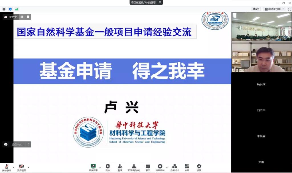 12月7日下午,华中科技大学卢兴教授应邀以在线会议的形式为九游体育官网全体教师做了题为《国家自然科学基金申报指导讲座》的专题报告。报告由九游体育官网副院长罗来马主持,九游体育官网党委书记吕珺教授、副院长周如龙教授及学院近百名教职工参加了报告会。