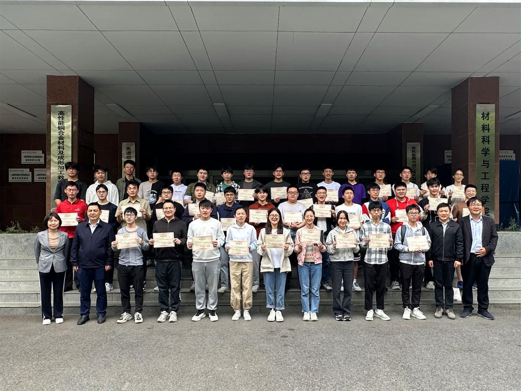 颁奖典礼于4月28日在材料楼举行,九游体育官网副院长周如龙、副书记兼纪委书记朱峰出席了颁奖典礼,并为获奖学生颁发了荣誉证书和奖品。颁奖典礼结束后,所有老师以及参赛同学于材料楼门口合影留念,本届金相技能大赛圆满结束。
