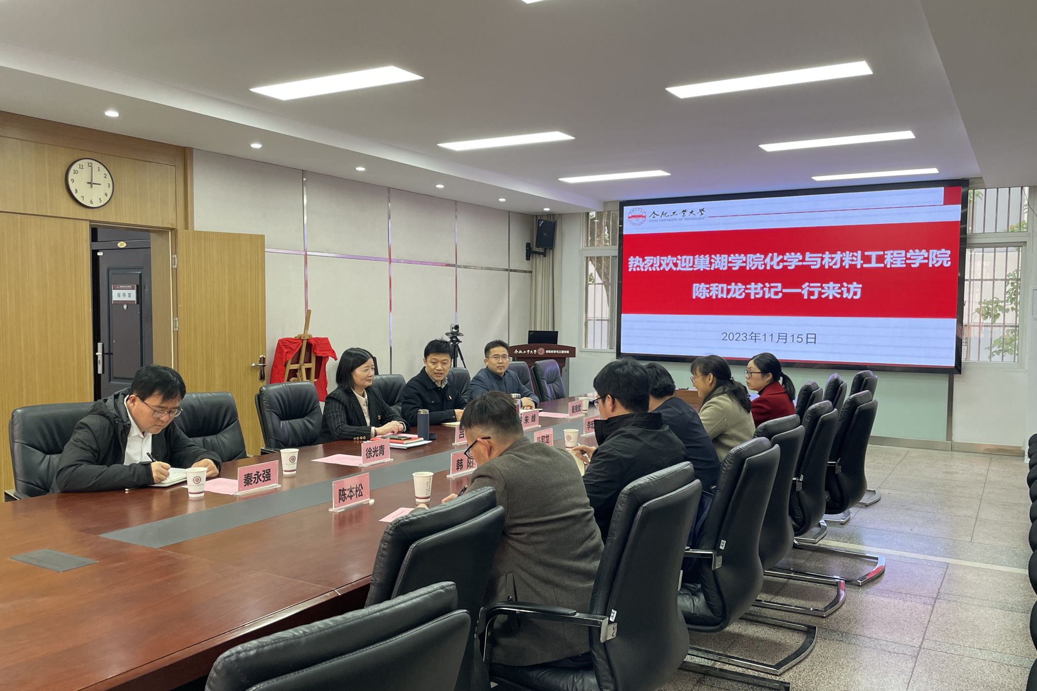 吕珺对陈和龙一行的来访表示热烈欢迎,并简要介绍了九游体育官网九游体育官网基本情况。陈和龙对九游体育官网九游体育官网的热情接待表示感谢,并介绍了巢湖学院化学与材料工程学院基本情况。