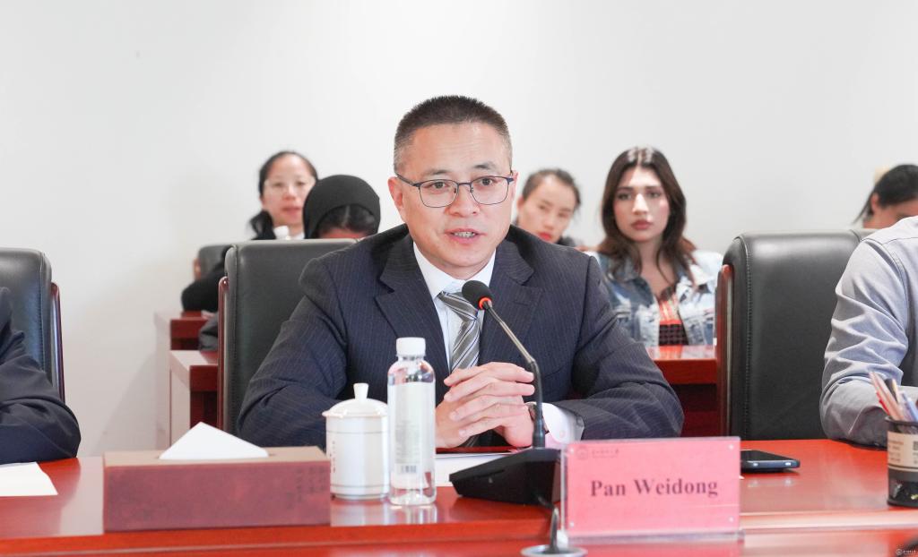 潘卫东详细介绍学校国际合作成果。他表示,学校愿进一步扩大与巴基斯坦在医学教育领域的合作,打造巴方学子来华学医“优选地”。