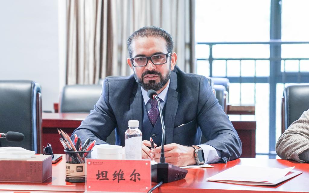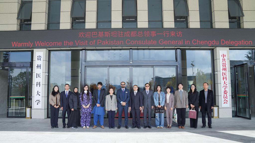 坦维尔总领事高度肯定中巴友谊及贵医办学成效。交流环节中,双方围绕巴基斯坦来华留学教育达成初步共识。