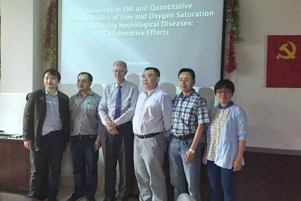 5月15日上午,美国韦恩州立大学磁敏感加权成像(SWI)序列的发明者Haacke教授在医学影像学院会议室为beat365师生作题为《SWI序列在定量测定神经性病变脑铁含量及氧饱和度中的应用》讲座。讲座由医学影像学院院长周石主持。