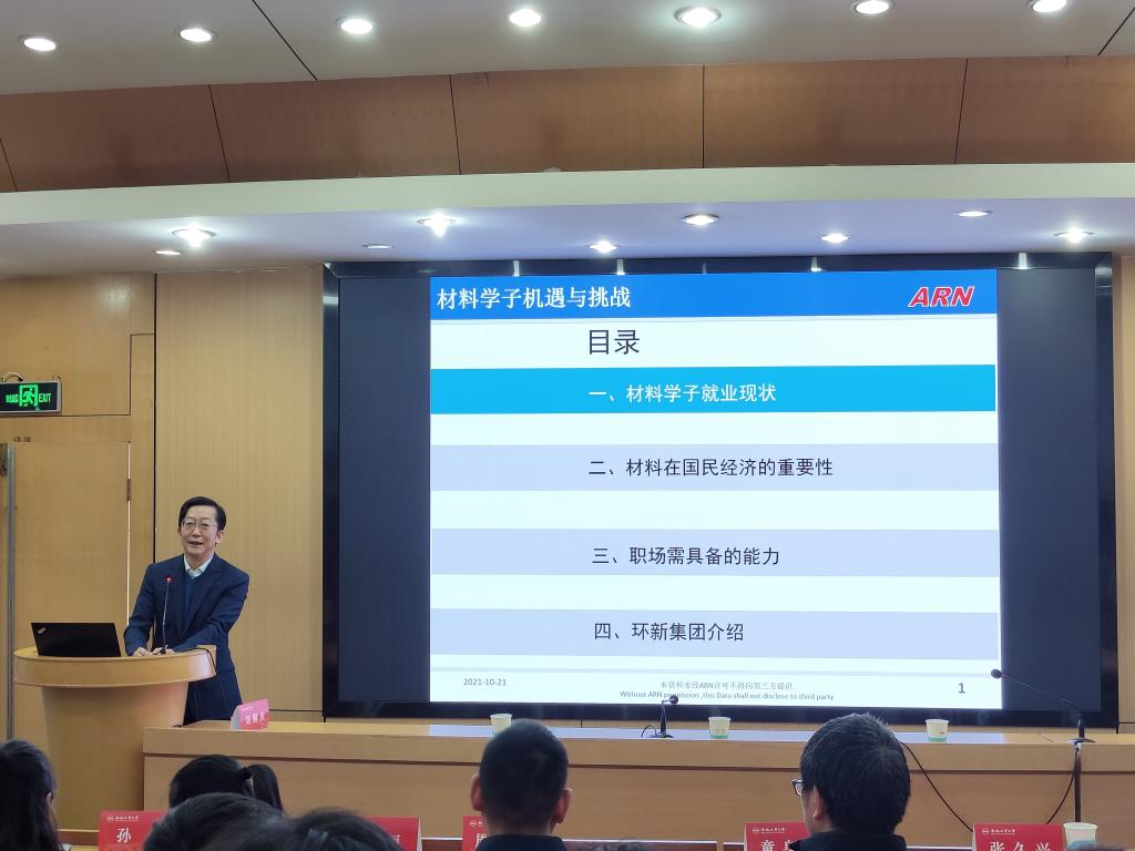 颁奖仪式结束后,刘铜庆以“材料学子机遇与挑战”为题,用翔实的数据和丰富的图表阐述了材料学子就业现状,深刻剖析了当前材料行业及材料学子当前存在的问题和面临的机遇与挑战,并强调了材料在国民经济中的重要地位。他还分享了自身职业生涯发展的心得体会,表达了对九游体育官网学子的殷切希望,鼓励青年学生树立远大理想,珍惜大学生活,强化专业学习,提高综合素质,争做行业领军人物,为实现中华民族伟大复兴的中国梦贡献自己的青春和力量。