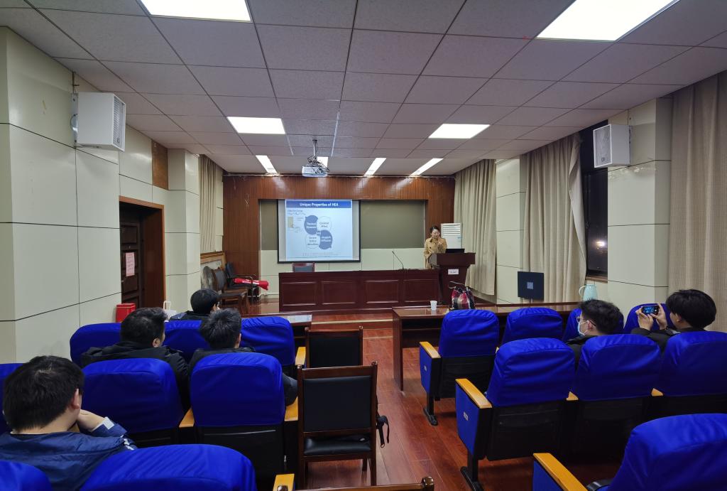 会议伊始,林俐菁同学首先对自己的研究方向-高熵合金,作了简单介绍,并将高熵合金所特有的晶格畸变效应、鸡尾酒叠加效应、迟滞扩散效应、热动力学上的高熵效应进行了详细讲解。随后王康同学围绕研究方向EBSD在材料变形和再结晶研究中的应用,讲述自己读研期间如何在这一方向中进行深入细致地研究与探索。