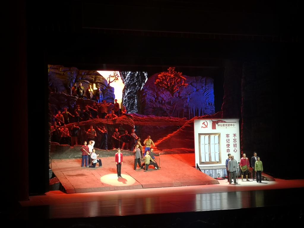 《太行》由山西艺术职业学院创作,取材于建国初期太行山居民在基层党组织的带领下用几十年时间开凿“脱贫公路”的故事。老一代党员干部在艰苦环境中用热血和生命前仆后继劈山开路,映射出建国以来的一代代基层党员干部不畏艰险造福百姓的执着品质。“太行山再硬,硬不过太行人的骨头;太行山再高,高不过太行人对美好生活的追求!” “路不打通,人不下山!”一个多小时的演出带领观众重温了太行山上人民不畏自然,敢与天公试比高的抗争精神。激荡起复的剧情,令观众潸然泪下;精妙卓绝的表演,引得掌声阵阵。