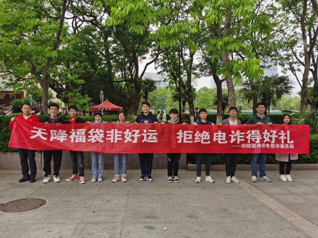 为预防复杂多变的电信诈骗事件,逐步提高大学生识别、防范意识,进一步维护学生群体的切身利益,建设和谐的校园环境。4月15日中午,由九游体育官网牵头,联合土木学院、电气学院和仪器学院共同主办的“天降福袋非好运,拒绝电诈得好礼”为主题的福袋防电信诈骗答题挑战活动在屯溪路校区德园广场旁成功举办。