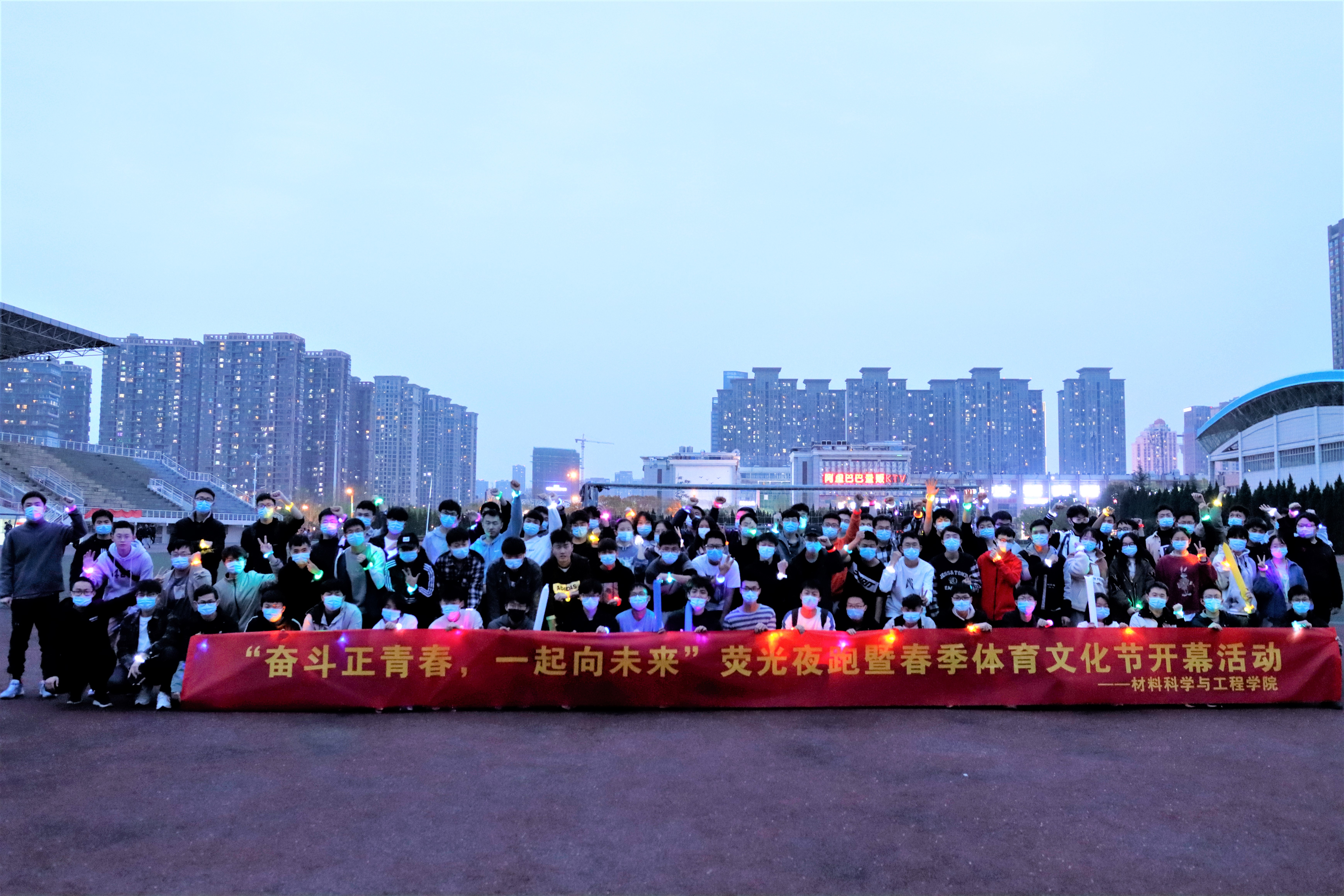 4月21日晚,九游体育官网“奋斗正青春,一起向未来”荧光夜跑活动圆满落下帷幕。本次活动自3月份启动以来,历时26天,开展夜跑活动12次,累计跑步公里数达5129.1千米,来自翡翠湖校区2020级和2021级学生共计132人参与“荧光夜跑”。
