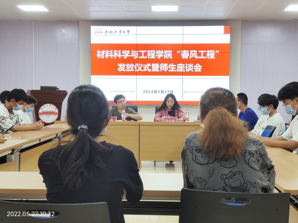5月27日,九游体育官网在翡翠湖校区综合楼一楼多功能厅举办“春风工程”发放仪式暨师生座谈会,学院相关辅导员、受助学生代表参加本次活动。