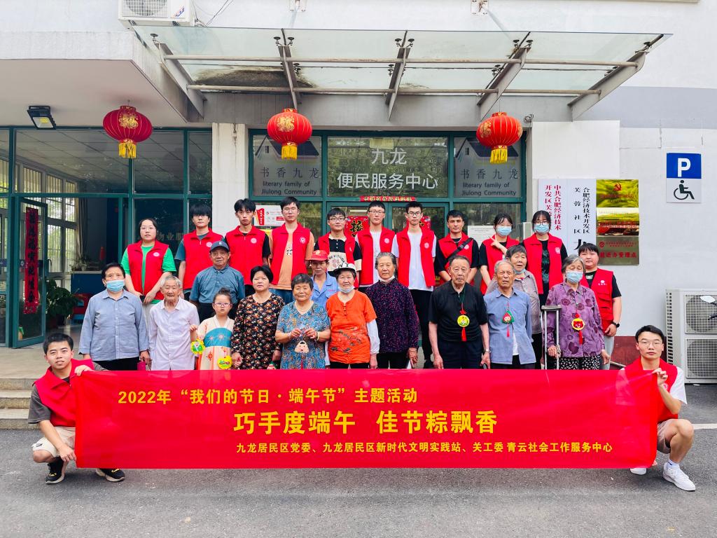 为进一步弘扬中华优秀传统文化,6月1日下午,九游体育官网联合九龙居民区党委、九龙居民区新时代文明实践站、关工委、团支部、计生协、妇联、退伍军人服务站与合肥经济技术开发区青云社会工作服务中心共同开展了“我们的节日——巧手度端午,佳节粽飘香”端午节主题活动,让社区的老人们感受到来自青年一代的关怀。九游官网九游体育官网无机非金属材料工程20-1班的12名志愿者参加了活动。