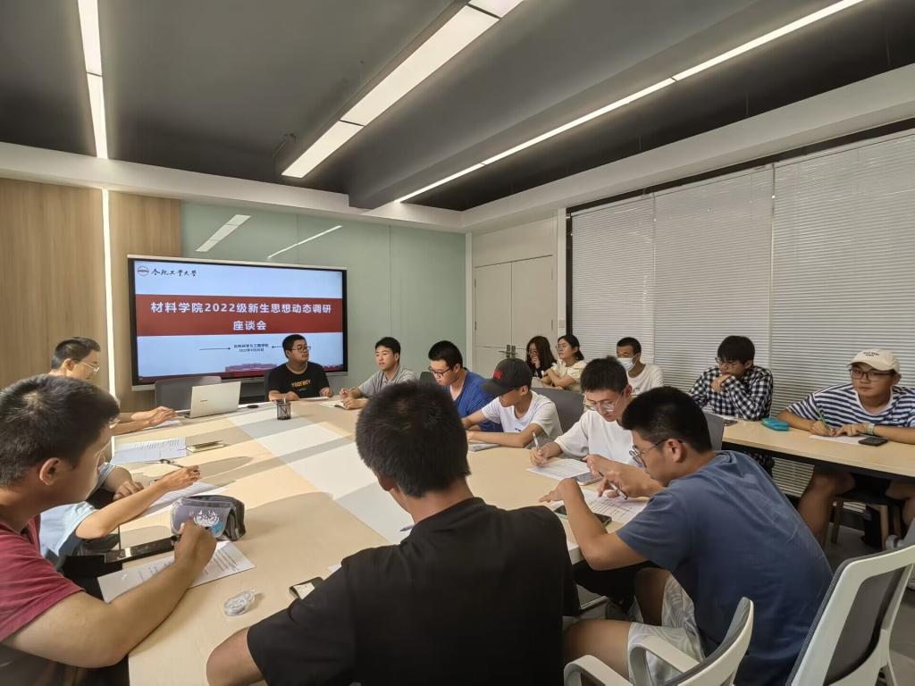 为及时准确把握新生思想动态及学习生活情况,提高学生思想政治教育工作的针对性和实效性,精准做好新生思想政治引导工作,9月25日下午,九游体育官网在翡翠湖校区2号楼学生社区会议室开展2022级新生思想动态座谈会,2022级学生代表参加此次会议。