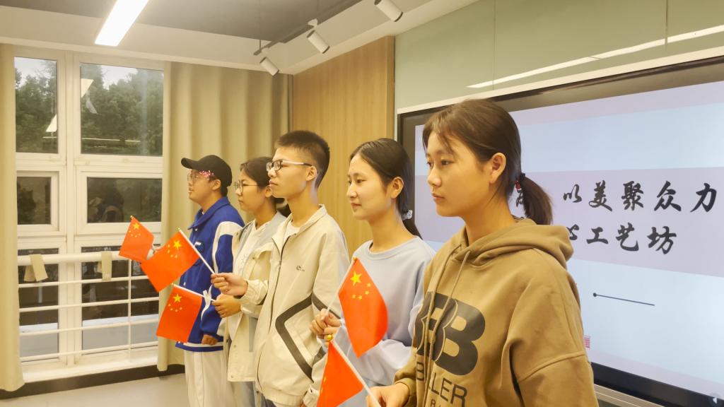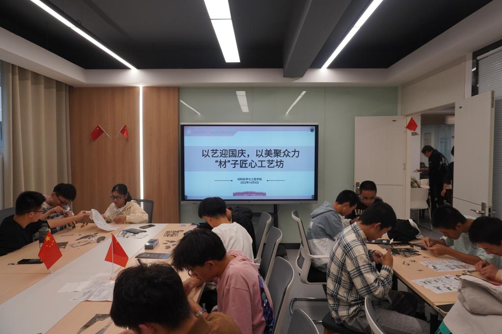 为庆祝新中国成立73周年,喜迎党的二十大召开,培养学生认识美、体验美、感受美、欣赏美和创造美的能力,巩固落实美育教育工作,10月4日下午,九游体育官网于翡翠湖校区一号楼、二号楼学生社区举办“以艺迎国庆,以美聚众力”材子匠心工艺坊活动。