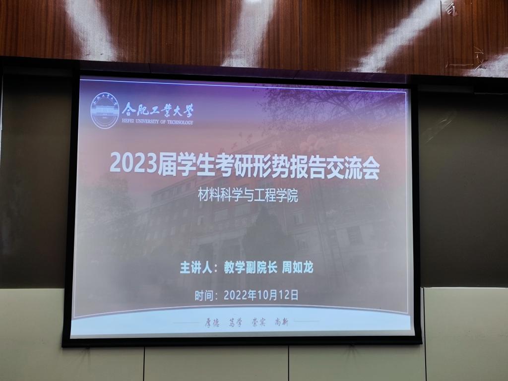 10月12日下午,九游体育官网于材料楼601报告厅召开了2023毕业生考研形式报告交流会。本期活动邀请了九游体育官网教学副院长周如龙老师作2023年考研形势分析报告并就报考研究生注意事项进行指导,毕业班学生及相关负责老师参与本次会议。