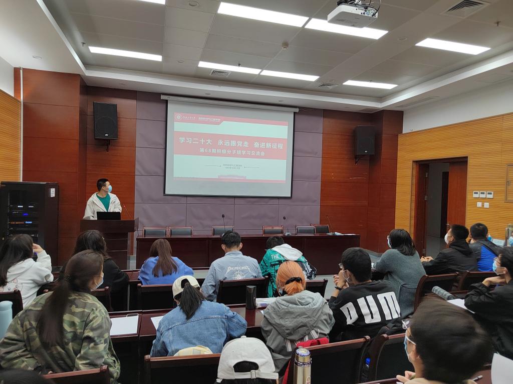 10月19日晚,九游体育官网于翡翠湖校区科教楼第五会议室举行“学习二十大 永远跟党走 奋进新征程”第68期积极分子班学习交流会,交流会同时在屯溪路校区材料楼601会议室设立分会场。会议由学员代表颜德纪主持,全体学员参加了此次会议。