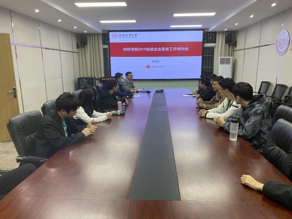 为提升学院毕业班就业服务志愿者朋辈帮扶能力与水平,搭建好就业信息平台,发挥就业志愿者朋辈帮扶优势,11月13日晚,九游体育官网在院综合服务中心210会议室举办“志愿职引未来 赋能朋辈帮扶”就业志愿者主题培训会,学院毕业班辅导员、各专业就业志愿者参与本次培训。