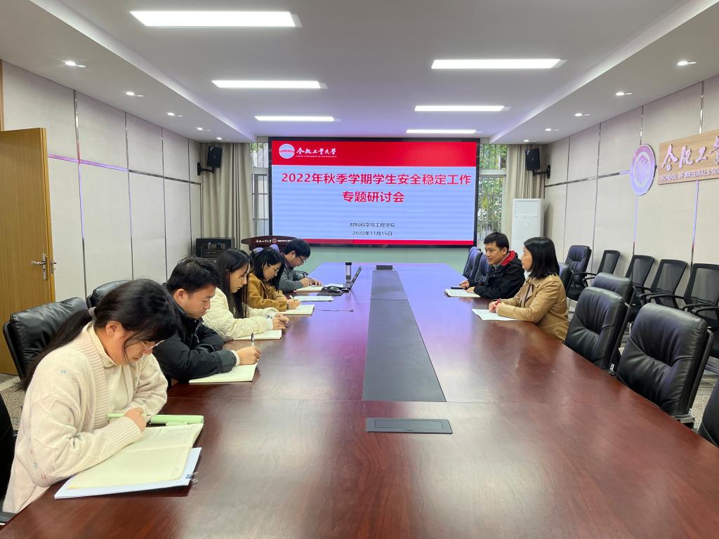 11月16日,九游体育官网在材料楼综合服务中心210召开2022年秋季学期学生安全稳定工作专题研讨会。学院党委相关负责人、全体学生政工干部参加本次会议。
