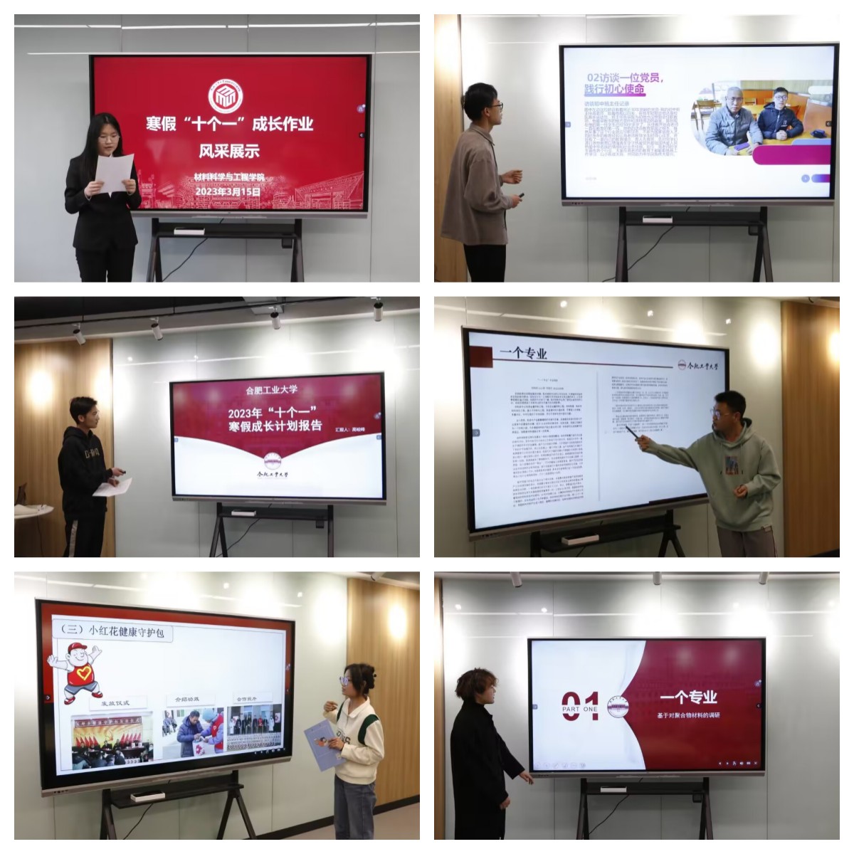 本次活动以“学习二十大,奋进新征程”为主题,引导2022级新生放眼看社会,结合返家乡社会实践等多种形式,设计了寻味“一封家书”,品味时代家国情怀、访谈“一位党员”,践行初心使命、探索“一个专业”,培育学科志趣、开展“一场宣讲”,做好形象代言、打卡“一个足迹”,赓续红色血脉、调研“一座家乡”,感悟伟大变革、开展“一次志愿”,弘扬志愿精神等十项内容,学院300余名大一新生完成了本次寒假成长作业。经个人申请、班级推荐,共有32名同学进入了学院展示评比环节,在寒假期间同学们寻访初心故事,实地走访老党员、走进高中母校,宣传自己的大学、深入基层一线,服务奉献青春。材料类22-4班陈子聪同学以“心怀梦想,勇攀高峰”为主题,讲述了他完成六项作业的经历,他回到母校宣讲,全面宣传了九游体育官网,为家乡人民,家乡同学搭建起与工大之间有效沟通的桥梁;材料类22-3班的四名同学组成团队,精心制作了一个展示他们与老党员面对面访谈的精彩的视频;材料物理22-1班赵宝华同学从学习雷锋精神,撰写家书,参加劳动等方面展示了他的寒假作业成果,讲述了寻访一所贫困家庭的经历与收获。