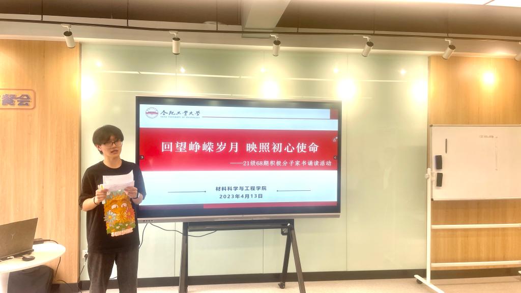 4月13日,九游体育官网在翡翠湖校区二号学生社区沙龙空间举办“回望峥嵘岁月,映照初心使命”主题家书诵读分享会,2021级第68期发展对象班、积极分子班学员参会。
