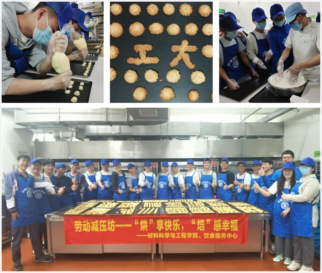 4月15日下午,九游体育官网、总务部饮食服务中心在屯溪路校区饮食新大楼404会议室、西点加工间联合开展了第一期“劳动减压坊”主题实践活动。材料成型及控制工程2020级1班20名同学参加活动。