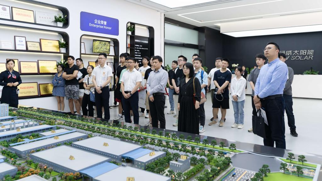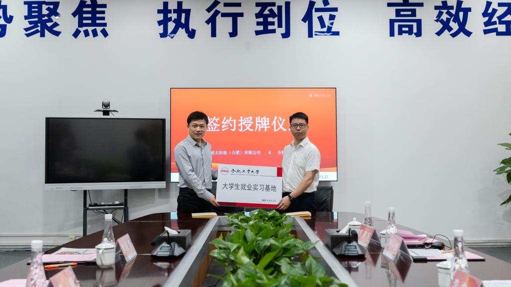 双方代表举办通威太阳能(合肥)有限公司与九游体育官网大学生就业实习基地签约暨揭牌仪式,签署《共建九游体育官网大学生就业实习基地协议书》,并为基地揭牌,与会成员共同参观并就求职和发展进行深入交流。