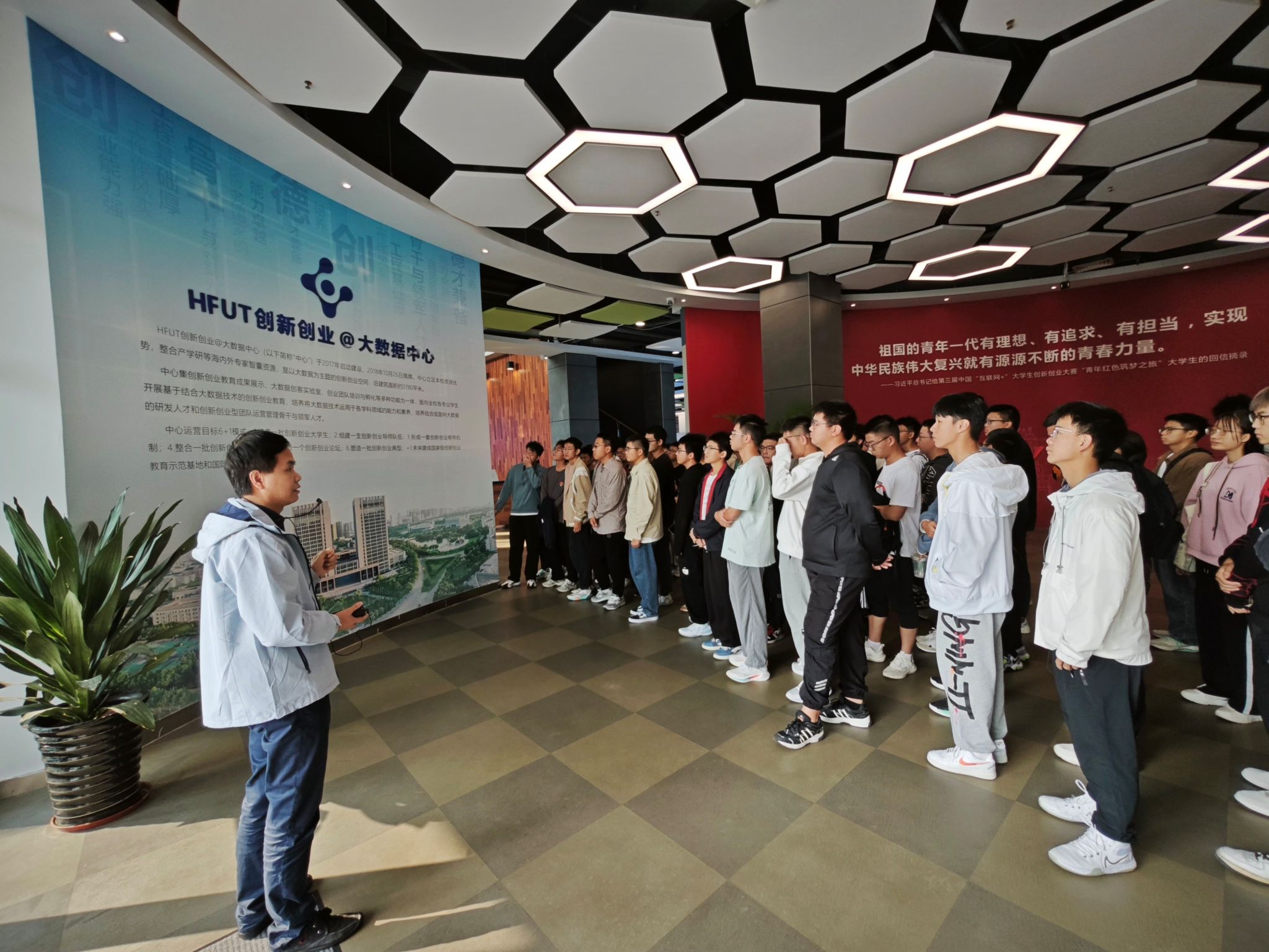 在大数据中心讲解老师的带领下,同学们认真学习了解了九游体育官网大数据中心基本情况,参观了创新创业教育成果展示大厅。同学们积极参与,学习了诸多创新创业优秀团队的新鲜经验,了解到了诸如“互联网+”、“挑战杯大学生创业大赛”“全国大学生金相技能大赛”等国家级竞赛的实际案例,为同学们接下来参与竞赛、项目,解决复杂学科竞赛问题等提供了思路,有效激发了同学们对创新创业的积极性。