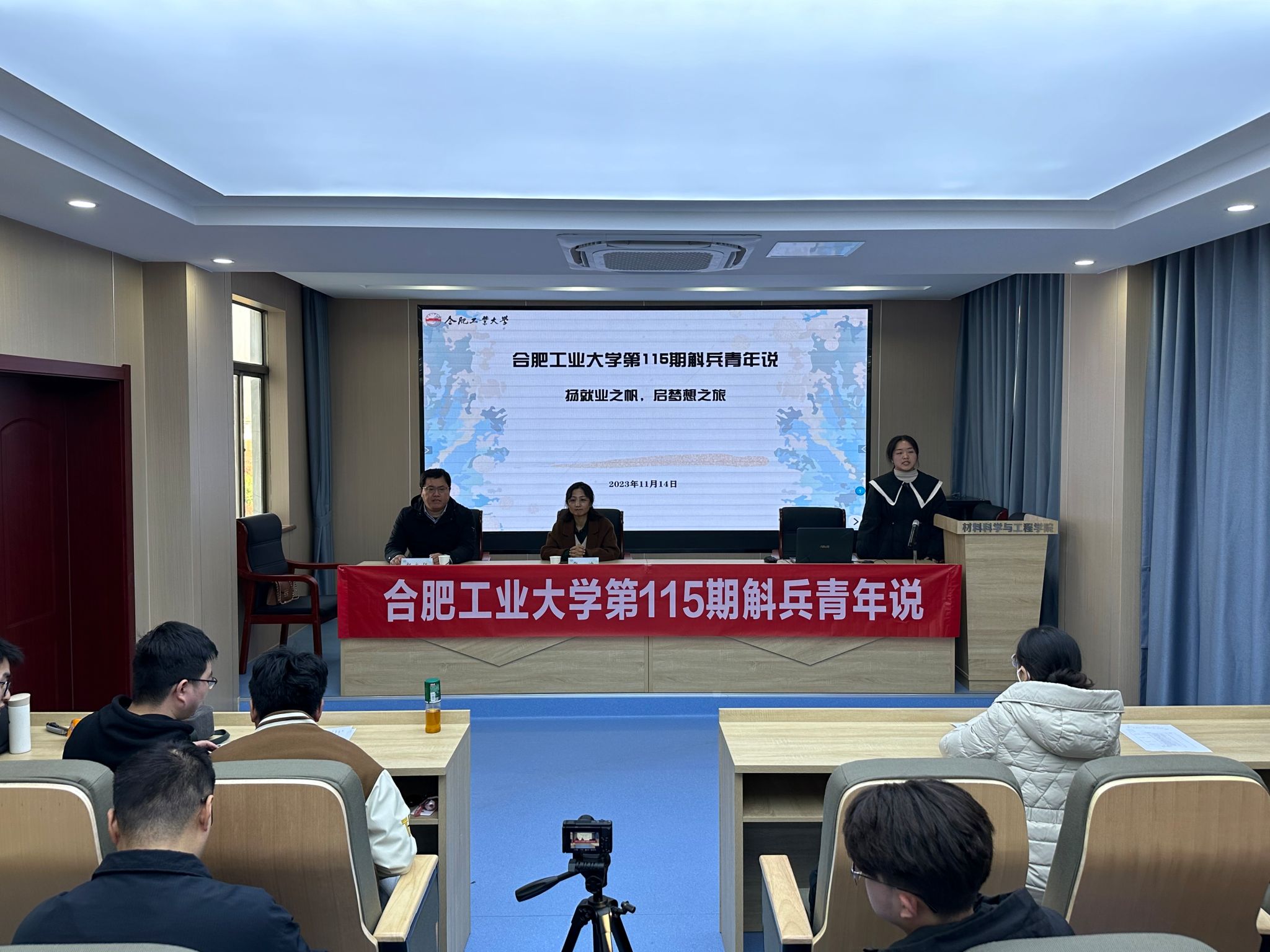 11月14日下午,在材料楼601报告厅成功举办学校第115期斛兵青年说——职场经验分享交流活动,本期交流活动九游体育官网主办,活动的主题为:“扬就业之帆,启梦想之旅”,活动邀请优秀校友张迪和赵永征作职场经验分享。