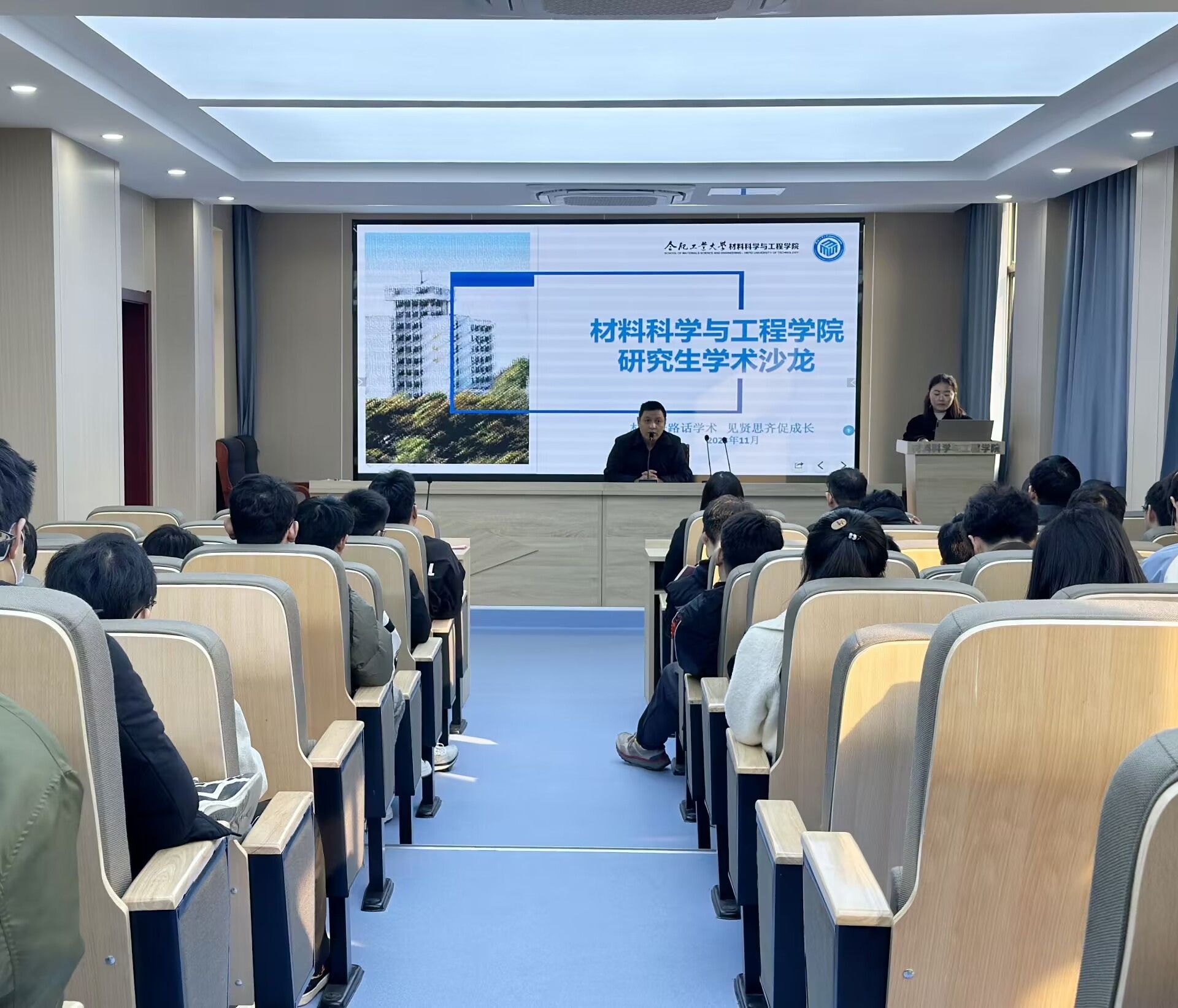 2023年11月29日下午,九游体育官网研究生学术沙龙启动仪式暨第一期学术沙龙活动在材料楼601举行。学院教学院长周如龙及40余位研究生出席本次活动。