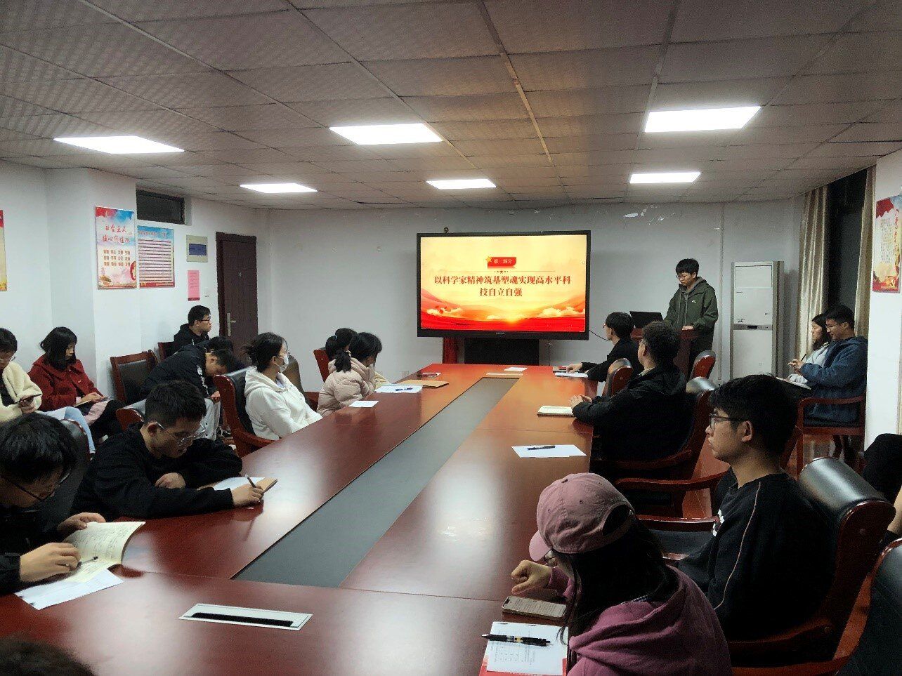 12月1日,材料工程第二研究生党支部举办“弘扬科学家精神,汲取奋进力量”主题观影党日活动。活动中,支部党员司永健同志分别从科学家精神是中国共产党人精神谱系的重要组成部分、以科学家精神筑基塑魂实现高水平科技自立自强、坚持守正创新让科学家精神代代相传三个部分深入对科学家精神的内涵进行了深入的讲解。多角度、多方面地讲述了科学成就离不开精神的支撑,并展示了近代中国科技事业发展经历的艰难与梦想、奋进与辉煌。随后带领党员共同观看钱学森先生的纪录片《仰望星空》,纪录片通过展示钱学森先生波澜壮阔的一生,反映了以钱学森为代表的一代仁人志士为中华民族的富强和人民的幸福安宁所作出的艰苦卓绝的努力以及他们无私奉献的爱国情怀。在观影结束后,与会同志们表示,深刻地感受到了钱学森先生身上关于科学家精神的深刻体现,并立志牢记初心使命,永葆奋斗精神。