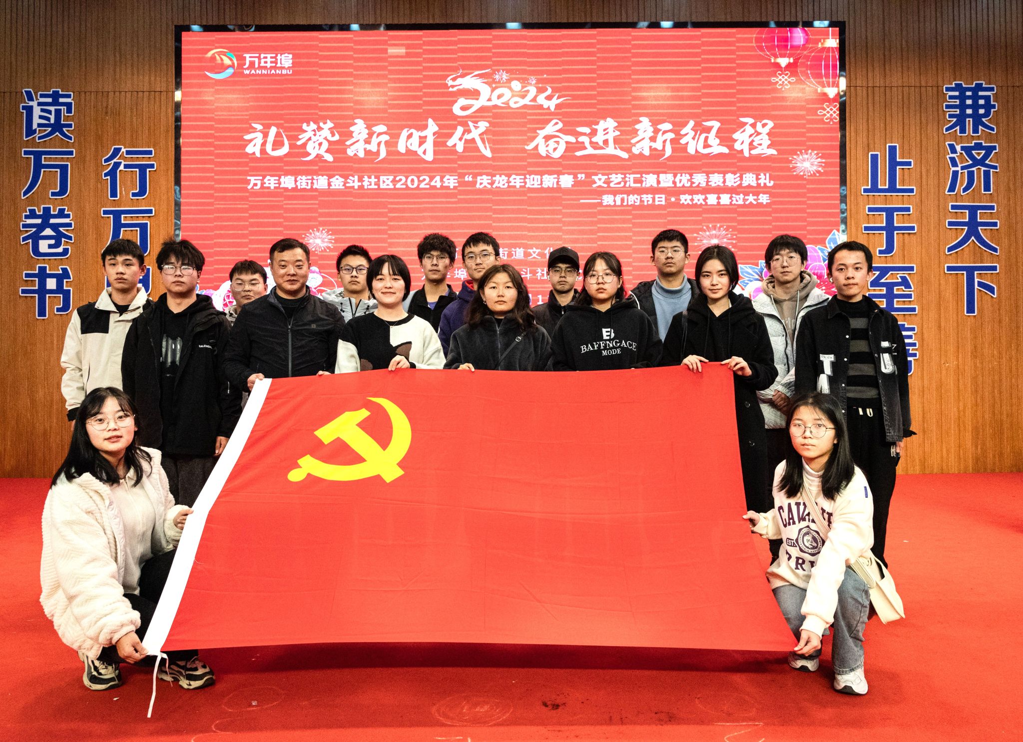 1月13日下午,九游体育官网本科生第二党支部赴万年埠街道金斗社区参加“礼赞新时代,奋进新征程”迎新春文艺汇演暨优秀表彰典礼。