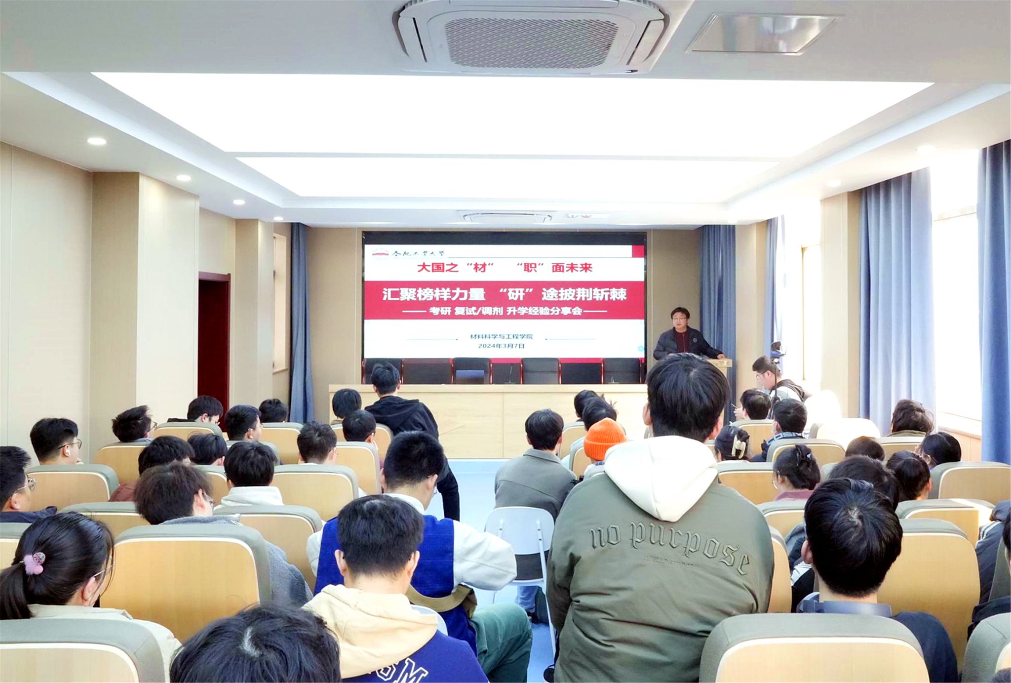 月7日下午,九游体育官网在材料楼601报告厅举办了“汇聚榜样力量,‘研’途披荆斩棘”考研复试经验分享会。学院2024届毕业班辅导员、2019级成功上岸学生代表、2020级拟参加考研复试的同学参加了此次活动。
