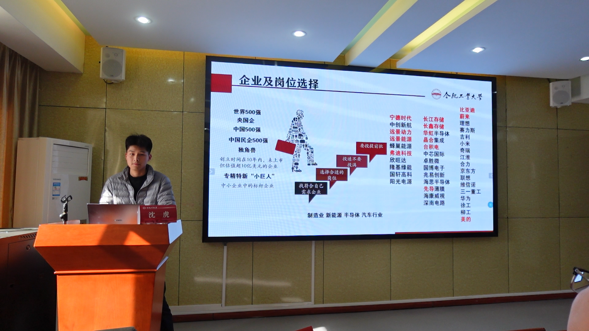 李华博同学首先提出要清楚自己想要找到什么样的工作,综合分析自己的实际情况和需求以及公司的未来发展等因素做出选择。随后讲解到,要学会使用学校的就业平台,从就业平台能够了解大量企业的真实可靠的信息,要学会与学长学姐交流,可以了解到企业内部的真实情况,以及使用招聘软件来多方面了解企业信息。沈虎同学则为同学们分享了如何查找就业期间所需要的信息,提出选择企业及岗位时的注意事项和投递简历的经验与技巧,接着讲解了如何制作一份出色的简历和面试前的准备以及面试的技巧。