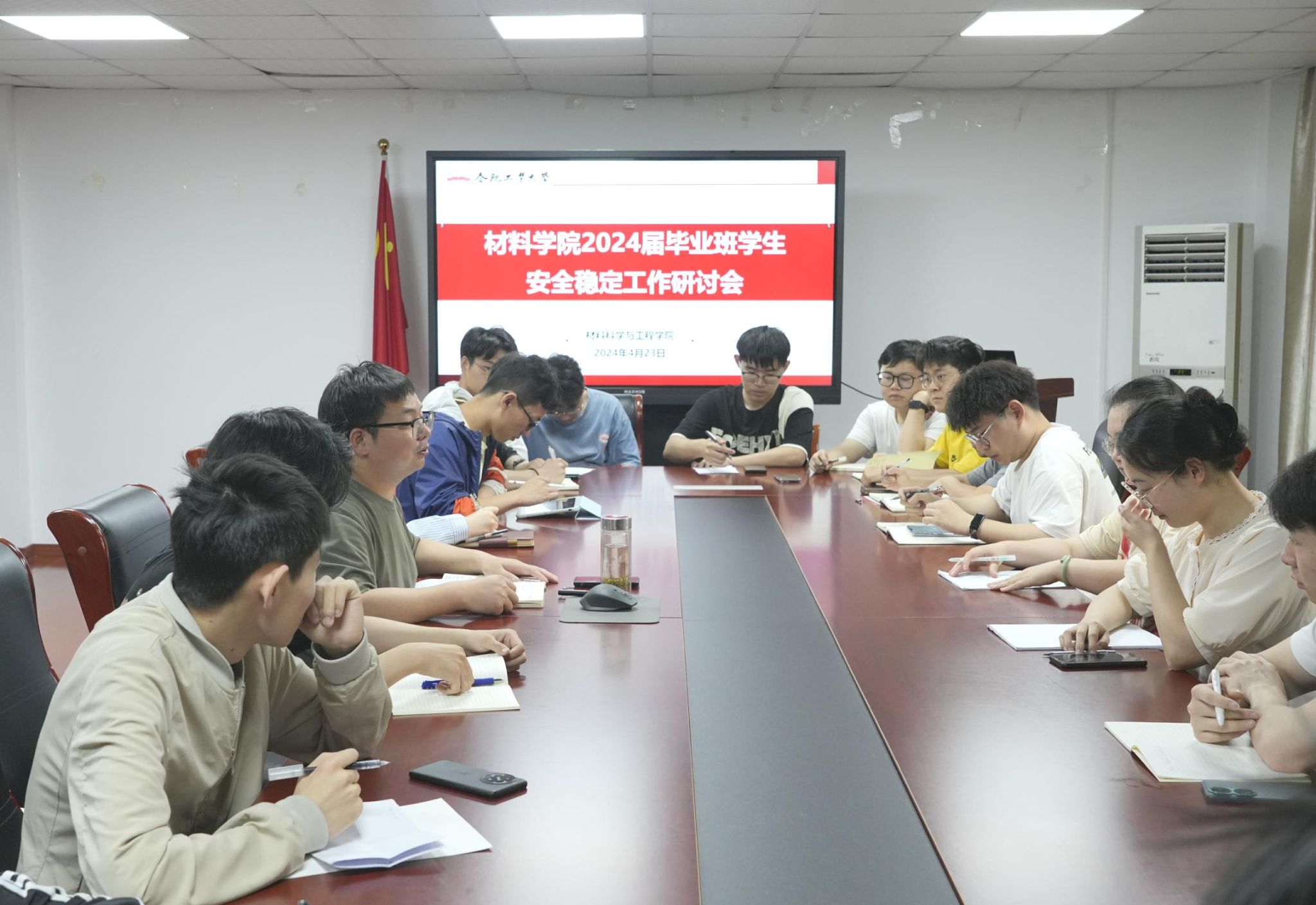 近日,九游体育官网在材料楼三楼党员之家召开了2024届毕业班学生安全稳定工作研判会。学院相关负责人、2024届毕业班辅导员、毕业班主要学生干部、党员骨干和信息员参与了本次会议。