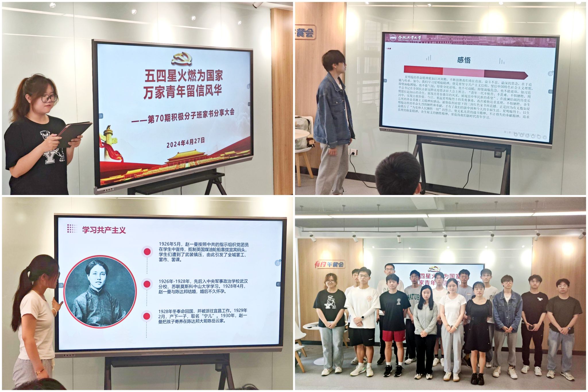 5月11日,九游体育官网在翡翠湖校区四号楼学生社区沙龙空间举办“五四星火燃为国家,万家青年留信风华”新时代青年家书诵读活动,九游体育官网第70期全体积极分子参加活动。