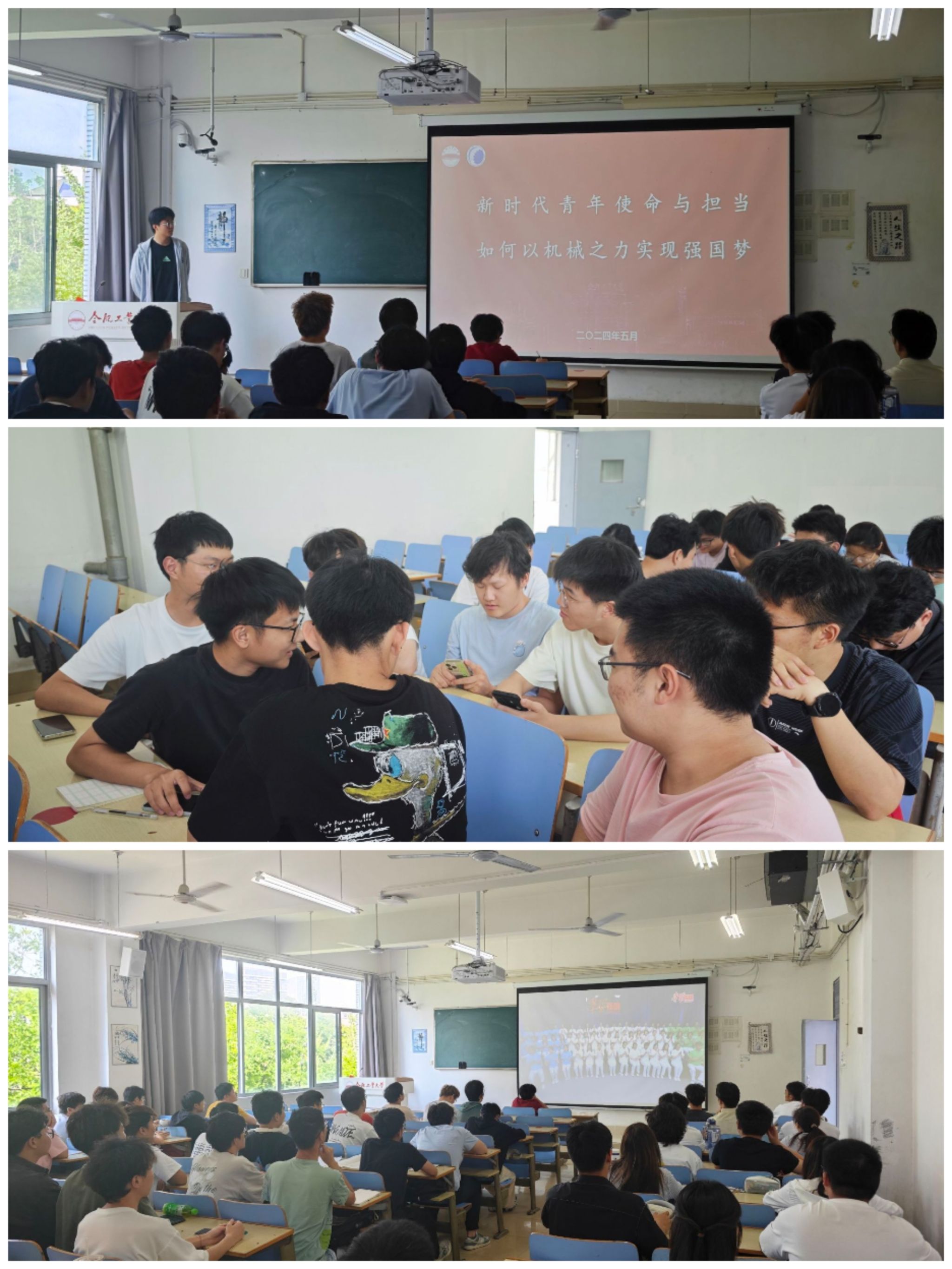 课程伊始,团校学员共同观看学习了一节思政视频课——做新时代好青年。视频中周荣方老师的演讲激情澎湃,故事中无数青年的奋斗历程激发了学员们的青春热情,令其备受鼓舞。视频学习结束后,团校四院分别组织交流分享活动,其中,机械工程学院分为三个小组开展“如何以机械之力实现强国梦”的小组讨论。各小组代表轮流上台分享本组讨论中得出的观点与看法,进行交流学习,大家深刻认识到要想实现强国之梦,就必须扎实学好专业知识,加强自主研发能力,勤思考,多创新。同时,学员们纷纷表示,要加强党史和团史的学习,以实际行动践行使命担当,磨炼青春意志,展现青春作为,为实现中华民族伟大复兴的中国梦贡献自己的力量。