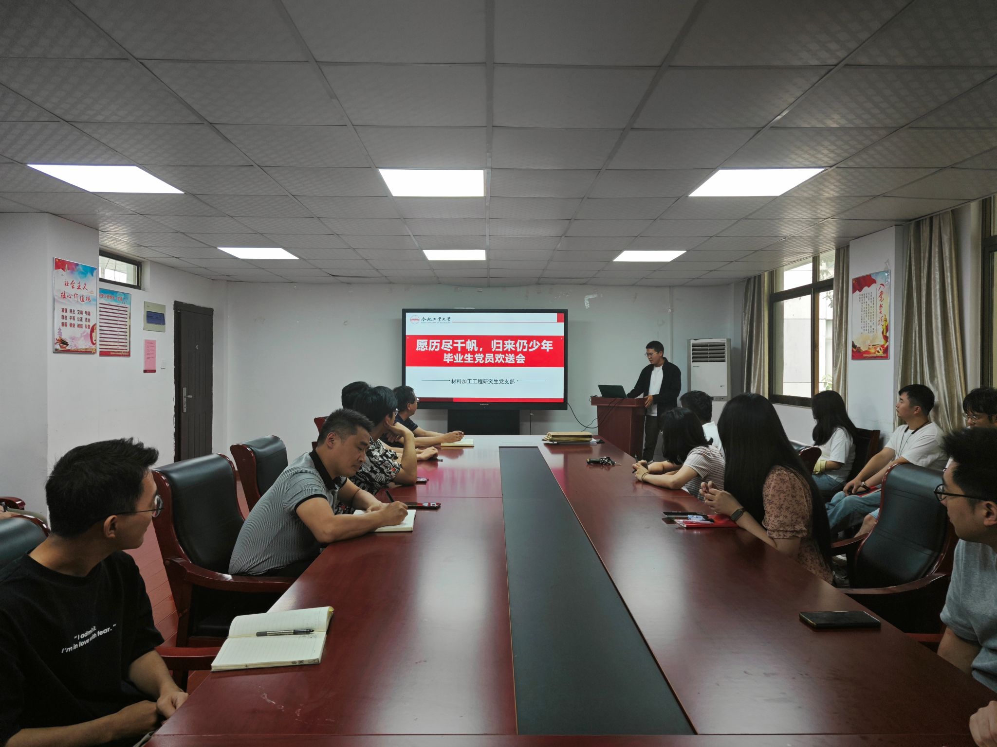 5月31日下午,九游体育官网材料加工工程研究生党支部在学院党员之家举办了主题为“愿历尽千帆,归来仍少年”的毕业生党员欢送会。此次活动旨在欢送即将踏上新征程的毕业生党员,增进党支部成员间的情谊,同时也激励在校党员继续努力奋斗。学院副处级组织员徐经忠参与了此次活动,并为毕业生们送上了殷切祝福。