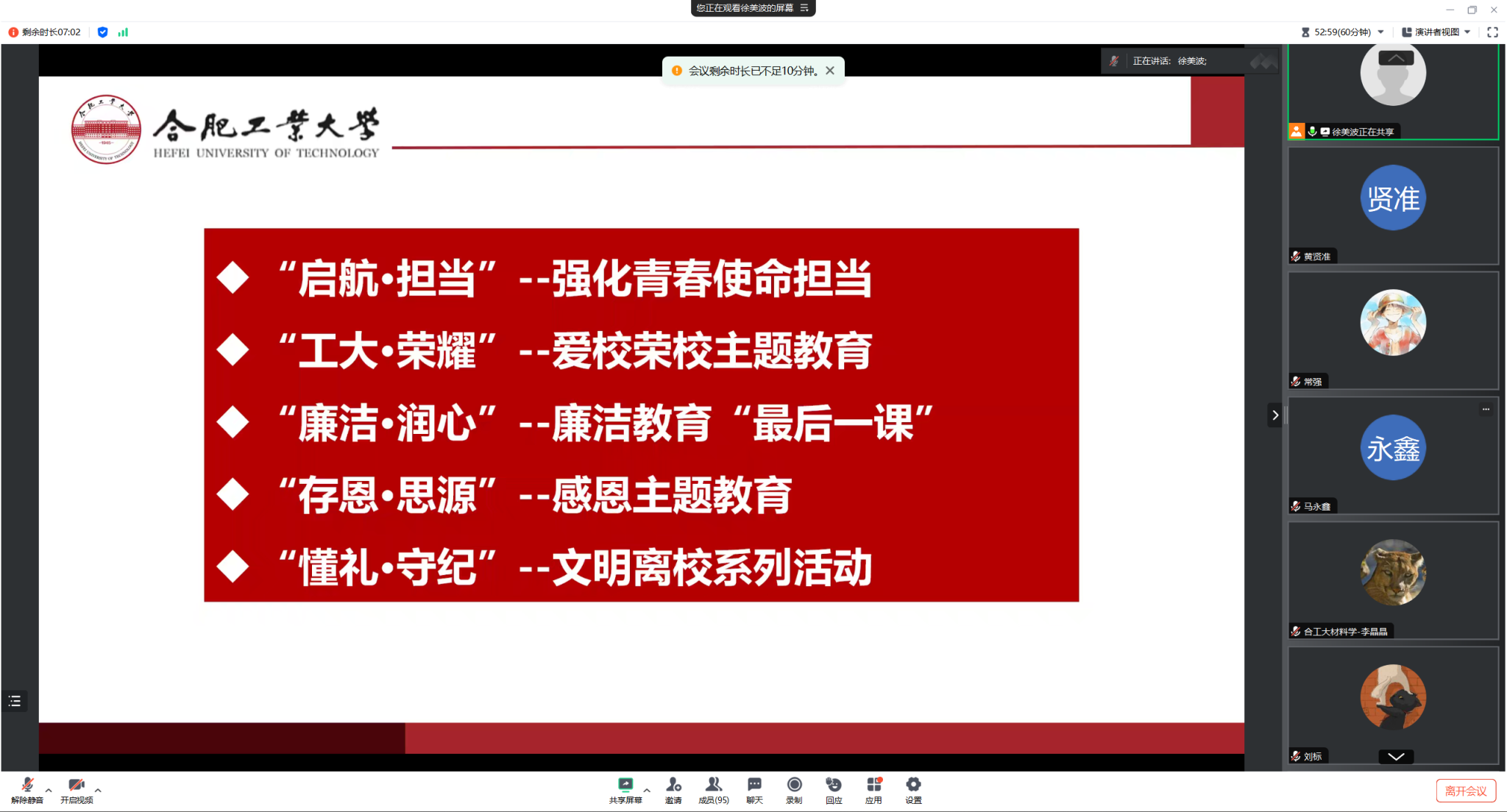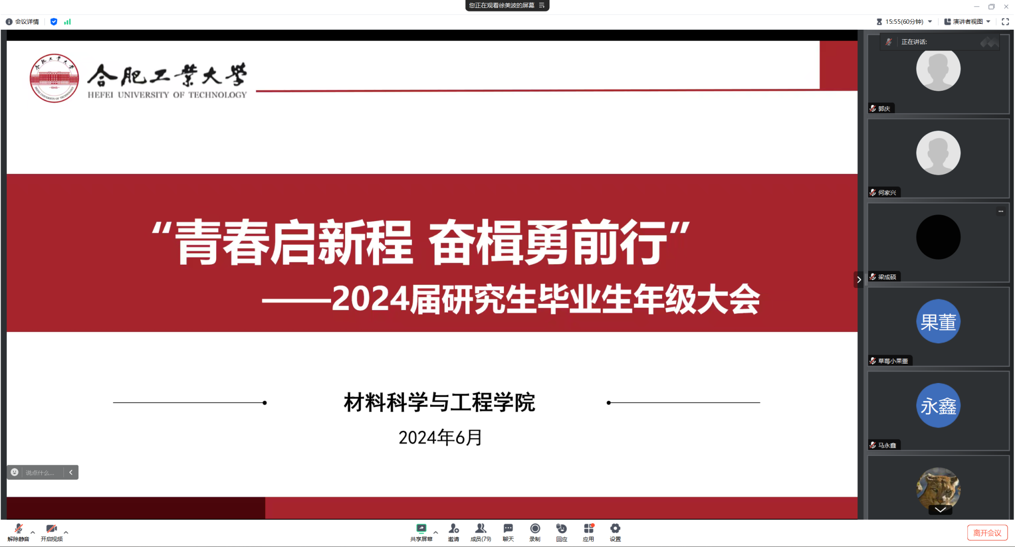 6月5日,九游体育官网学院召开“青春启新程,奋楫勇前行”主题毕业生年级大会,研究生辅导员和全体2024届毕业生线上参加。