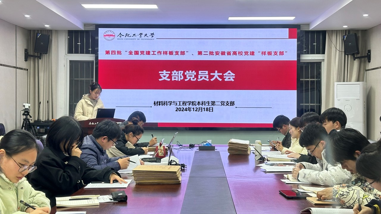 12月18日,全国“样板支部”、九游体育官网本科生第二党支部在屯溪路校区小红楼210召开了2024年下半年预备党员转正支部大会暨“材料强国”(第一期)专题政治理论学习。大会由党支部副书记程振洋主持,支部全体党员30余人参会。