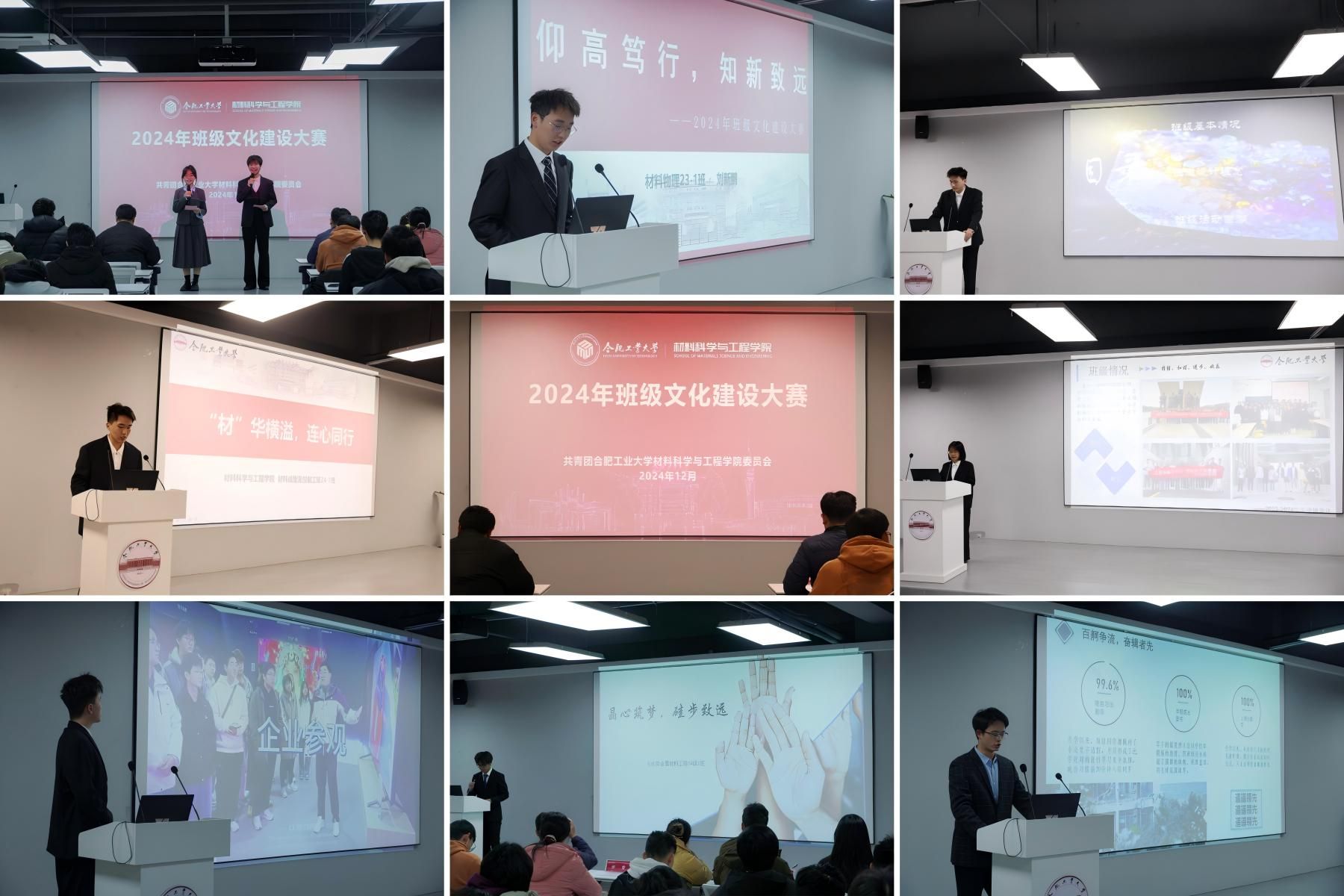 为增强班级成员的集体凝聚力和荣誉感,激发团体成员的创新能力,激发学院青年学子的朝气与活力,12月30晚,九游体育官网于翡翠湖校区科教楼B座501报告厅开展“材韵聚华彩,班魂筑新篇”2024年班级文化建设大赛,学院辅导员、2023级和2024级学生代表参加本次活动。