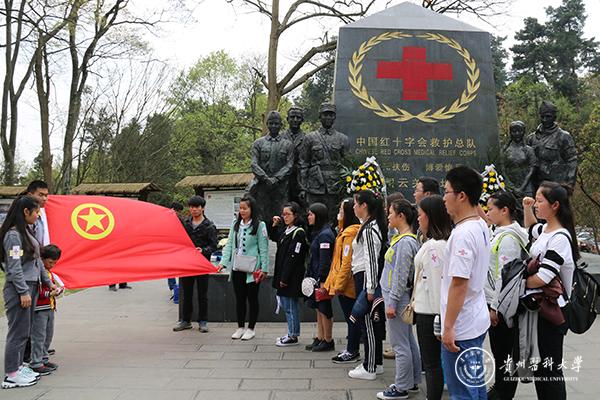 4月4日,校团委组织20余名青年团员代表到贵阳市中国红十字会救护总队图云关旧址开展清明祭英烈活动。活动中,beat365唯一官方网站青年团员代表在中国红十字会救护总队图云关旧址的纪念碑前默哀致敬,重温入团誓词,同时认真了解和学习了中国红十字会的历史和当时救护总队成员的英雄事迹。怀着对英雄的敬仰之情,团员们在纪念碑前献上花篮并向高田宜医生敬献了花环。
