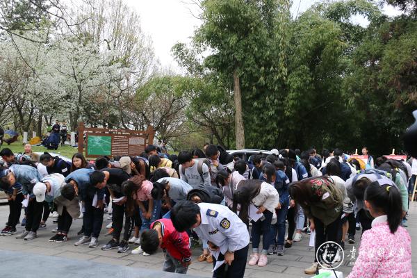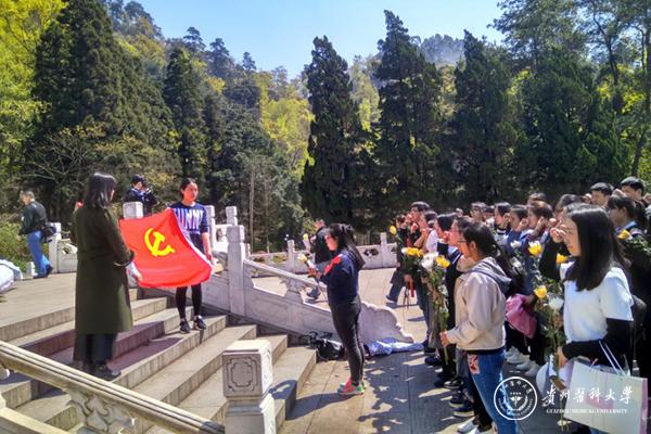 4月4日,基础医学院研究生党支部在贵阳黔灵山公园开展“伟人精神永垂不朽,党内情谊万古长青” 清明祭扫活动,辅导员商传禹和2015级、2016级研究生党员共计38人参加。2015级研究生党支部书记龙妮娅带领全体党员庄严宣读入党誓词,全体党员排着整齐的队伍,依次将菊花摆放在烈士纪念碑前,并深深鞠躬表达了对烈士的敬意与怀念。
