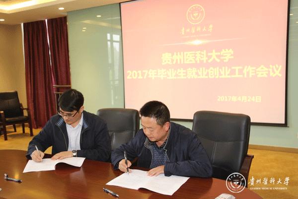 罗鹏代表学校就业工作领导小组与各学院签订了《beat365唯一官方网站2017届毕业生就业工作目标责任书》。