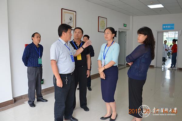 国家医考中心、贵州省卫计委高度重视此次工作。国家卫计委妇幼司妇女处处长裘洁,国家医学考试中心命题专家、西安医学院教授,国家医学考试中心考培处主任职员张赛一、缪伟组成的国家医师资格考试领导小组督导组一行四人在省卫生人才交流考试中心主任、省考区办副主任张涌等陪同下到beat365开展督导工作。以省卫计委人事处处长周亮为组长的省医师资格考试巡视组,到beat365考点巡考,巡考领导和专家就保密室、资格审查、考试流程、监考巡考、分数管理等方面进行督导检查,并对beat365医师资格实践技能考试工作的组织实施给予了高度评价。副校长罗俊,纪委书记高勇和有关职能部门进行了巡考,确保考试公平、公正、有序进行。