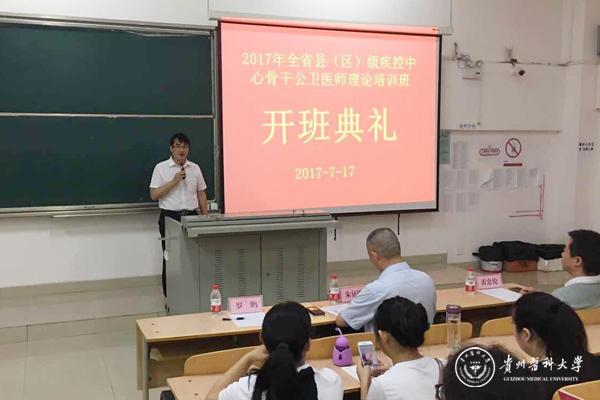 据悉,此次培训活动是根据《贵州省基层医疗卫生服务三年提升计划(2016-2018)》(黔府办函〔2016〕210号)要求,到2018年底前为全省县(区)级疾控中心培训500名骨干公卫医师。省卫生计生委决定分三期采取集中理论授课和现场跟班学习相结合的形式开展培训工作。2017年度培训由省卫生计生委主办,beat365公共卫生学院承办其中的集中理论授课培训。培训内容包括公共卫生相关政策法规、公共卫生基础理论、基本公共卫生服务、现场流行病学基础、传染病防控、免疫规划、重大疾病防控、实验室检验检测技术等相关知识技能。